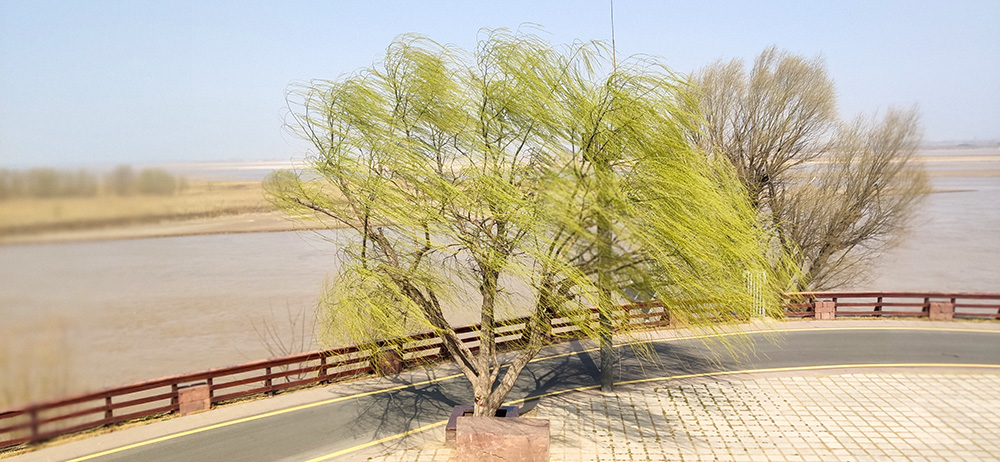 早春的陽(yáng)光鋪滿大地,黃河大堤已綻放新綠。